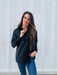 - Relaxed fit. Ashley (5’5”) is wearing true to size, size small.