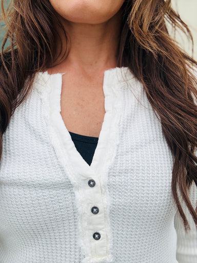 This Brooks Button Top by Dylan features a waffle-knit fabric and a timeless henley design. It has long sleeves with finely crafted raw-edge hems a...