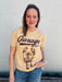 American Needle RL Pigment Tee with Garage Beer dog logo. 100% cotton mens crew neck T-shirt. Over dyed Pigment Garment wash. Athletic fit. Ribbed knit collar. Center chest logo distressed screen print.