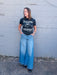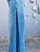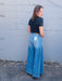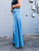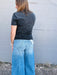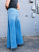 Elevate your style with these medium-wash denim jeans featuring a high-rise fit, wide legs, and a fun side triangular tuck detail that adds a unique twist.