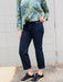 Elevate your wardrobe with the MICA Mid Rise ankle-length jeans in a deep blue cuffed finish. Featuring a straight leg cut, this classic dress jean offers both style and comfort for everyday wear.