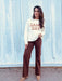 The MICA vintage brown wide-leg jeans boast a high-rise design and a timeless shade tailored for the Fall and Winter seasons.