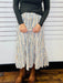The Wavy Tiers Maxi Skirt features fun, flowing layers in vibrant multicolor stripes set against a creamy ivory background. Made from 100% rayon for a breezy, comfortable fit.