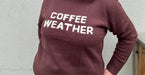 Cozy up in this dark brown knit sweater featuring a fun "Coffee Weather" print on the front. Designed with long sleeves and a relaxed fit, it’s perfect for those laid-back days when all you need is comfort and caffeine vibes.