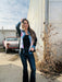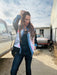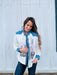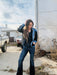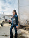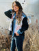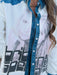 Elevate your wardrobe with this distinctive band shirt, featuring a refined denim collar that adds an unexpected touch of texture and visual interest. A sophisticated choice for those who appreciate curated style with an edge.