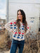 Crafted with refined elegance, this sweater features an intricate weave of multicolored bandanas throughout, creating a distinctive textural pattern. The sophisticated interplay of colors and woven details elevates any wardrobe with understated style and artistic flair.