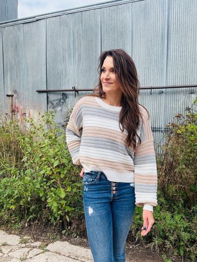 This cozy sweater features a fun crew neckline, long sleeves, and bold, wide stripes for a playful twist on classic style. Fabric: 100% Polyester ...