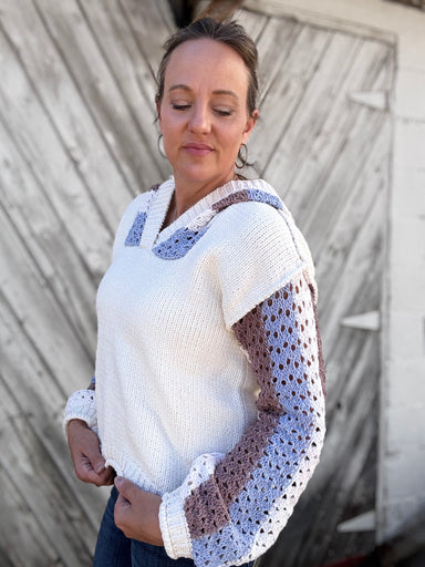 Stay snug in this playful knit hoodie featuring charming striped sleeves—a perfect blend of comfort and style. Fabric: 100% Polyester Fit Oversi...