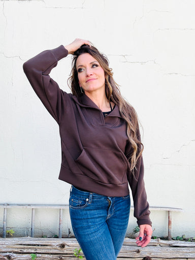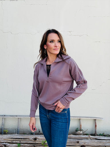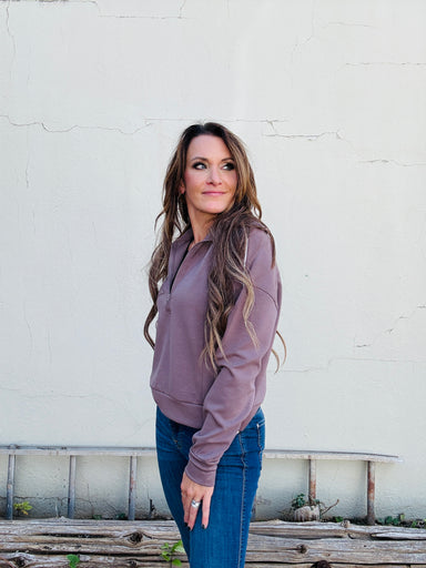 Meet the Thread & Supply Alana Top—a cozy long-sleeve sweatshirt with ribbed cuffs and hem, featuring a playful split neck and an oversized col...