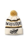 Cozy cuffed knit beanie topped with a fun tri-colored pom. Features a stitched Merrowed patch proudly displaying the Garage Beer Logo. Part of Amer...