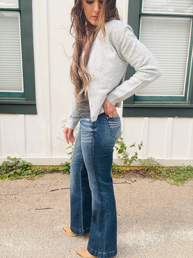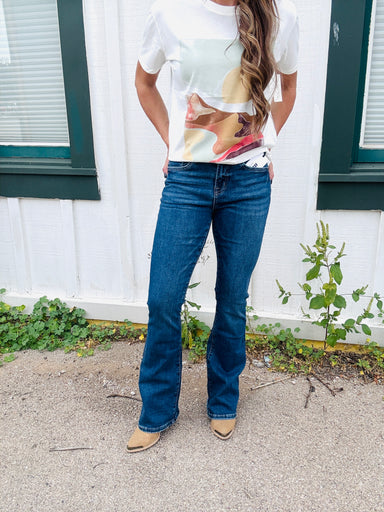MICA Denim features a sleek dark wash with a flattering flare silhouette. Designed with a super high-rise fit, these jeans offer a refined and fash...