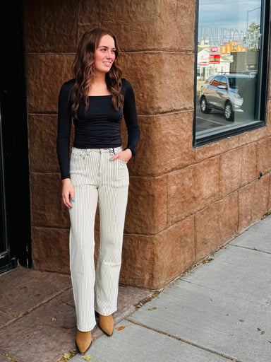 Introducing the MICA Super High Rise Loose Fit Straight Leg Jean—a refined twist on classic workwear. Designed to look like tailored trousers, thes...
