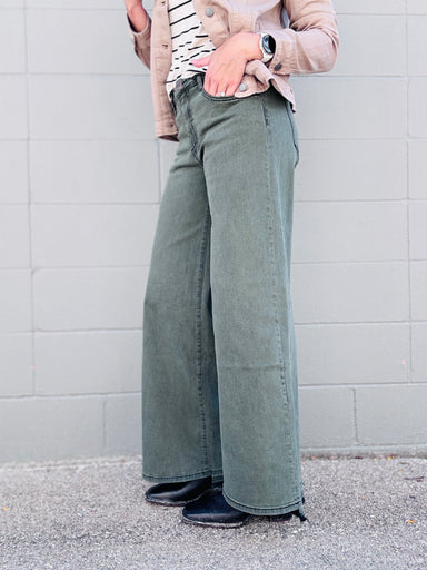 Experience bold style with these super high-rise wide-leg pants in deep Ink Black. Crafted from MICA Denim, they feature MICA’s signature Tummy Tuc...