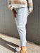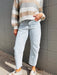 MICA Super High Rise Barrel Leg Jeans in Jeans Aid Blue feature a stylish barrel silhouette with unique seam accents. Made in light wash denim, these ankle-length jeans boast a trendy frayed hem and a flattering side inset panel for added detail.