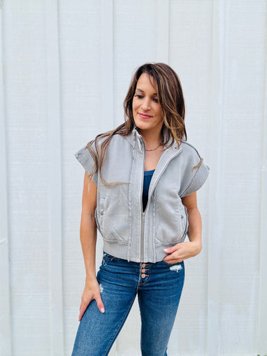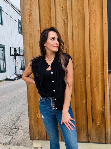 This sleeveless cardigan features delicate cap sleeves and a stylish button-up front, perfect for layering with ease and adding a chic touch to any...
