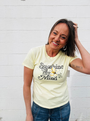 Beer Never Broke My Heart graphic tee. Fabric: 100% Cotton. Preshrunk. Fit: Ashley is 5’5” (125lbs) wearing true to size, size small.
