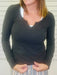 This fun and comfy long-sleeve top comes with a cute notched neckline and a ribbed texture. Made from soft, stretchy fabric (92% rayon, 8% spandex), it hugs just right with a relaxed slim fit. Perfect for layering or wearing solo, it’s an easy-go-to essential for any playful wardrobe.
