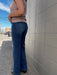 Mica Denim with a commanding high-rise fit and bold wide legs. Presented in Captain Blue with a clean, non-distressed finish for a striking statement.