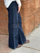 KThese high-rise cargo jeans feature a bold wide-leg cut and a striking deep sapphire hue for a standout look.