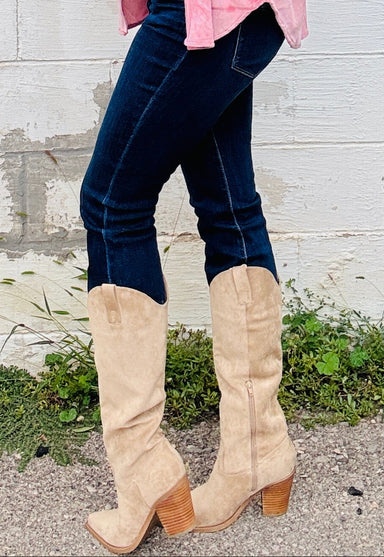 Go tall or go home. Crafted from soft vegan suede, Messini features a 16-inch shaft, 2.7-inch block heel, and pull tabs for easy on-and-off wear—pl...