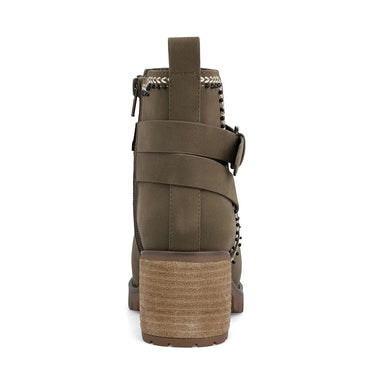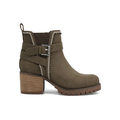 Add this fun statement bootie to your fall wardrobe. Crafted from sleek, vegan suede, Fausta features a polished silver buckle and a chic brown out...