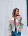 Layer on effortless style with this charming patchwork button-down jacket. Featuring a mix of textured fabrics and delicate floral prints in soothing jade and ivory tones, it's the perfect piece to elevate your spring wardrobe. The thoughtful patchwork design adds visual interest and personality to any outfit, making it an instant favorite for transitional weather and casual sophistication.