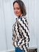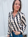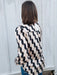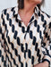 Slip into effortless style with this long-sleeve button-down that's got serious satin vibes. The crisp collar and geometric print in cream and black make it perfect for dressing up or keeping it casual. Whether you're heading to brunch or the office, this piece brings a playful edge to any outfit.