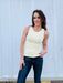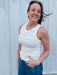 "Indulge in the ultimate trifecta of fabric blends with this crew neck tank!"