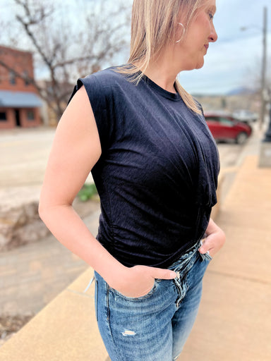 Looking perfect in Plata. Our Plata Notched Tee is your new casual weekend style BFF. It features a notch neckline, raw edges, and a relaxed fit f...