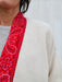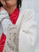 Elevate your wardrobe with this distinctive ivory cardigan, distinguished by its refined bandana detailing at the cuffs and collar. A truly singular piece that combines timeless elegance with artistic flair, perfect for those who appreciate curated, one-of-a-kind fashion statements.