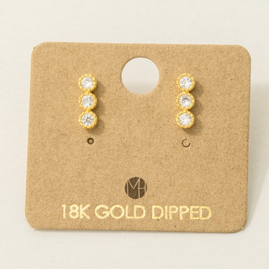 Elevate your jewelry collection with these refined gold-dipped cubic zirconia triple bar studs. Featuring three brilliant stones set in a sleek lin...