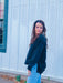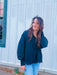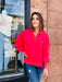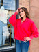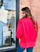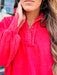 This pullover sweatshirt has a classy 1/4 button up front with a collar. Oversized for a comfortable fun fit!
