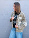 The POL Leopard Twill & Lace Jacket mixes bold printed twill with textured lace patchwork for a standout style. Featuring cargo pockets with lace & stud accents, plus a chic back pleat and buckle, it merges edgy vibes with playful details. With a diamond distressing detail. Ideal for anyone wanting to rock a cool, effortless look that turns heads.