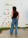 - Has stretch. Ashley is 5’5” (125-130lbs) wearing size 24. She is typically a size 24 in Micas, size 26 in 100% cotton jeans.