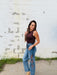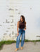 Introducing the Driftwood Parker x Varsity Vines Wide Leg Jean in Varsity Vine Medium Wash. This blend of cotton, polyester, and spandex ensures comfort and flexibility, while the wide barrel legs with raw edge hems add a trendy twist.