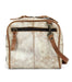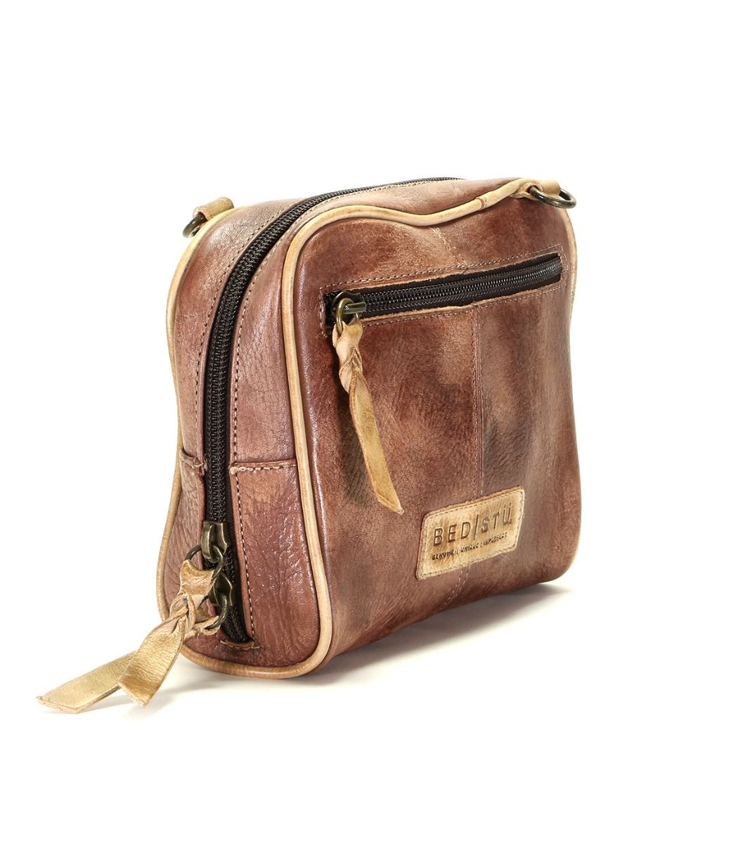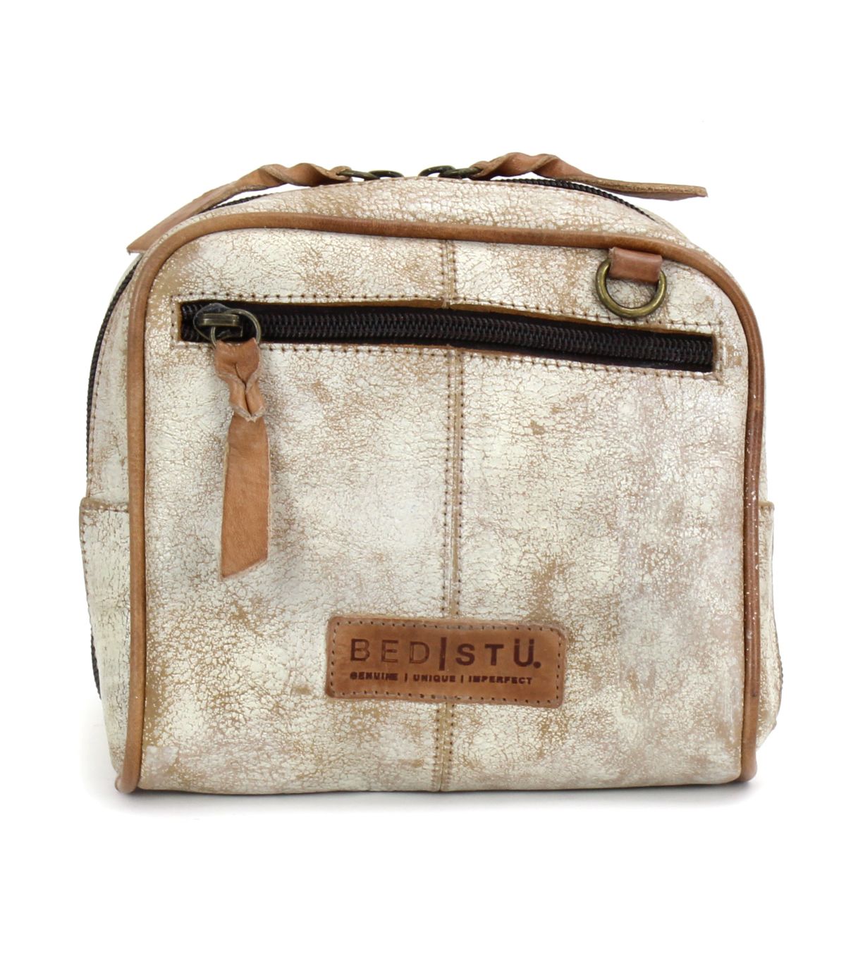 - Zip top closure, with leather pulls