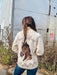 This effortless shawl cardigan features a generous, comfortable silhouette with an open front design that layers beautifully over any outfit. The back showcases a distinctive horse head graphic for understated visual interest. Crafted from soft knit fabric, it delivers the cozy warmth and gentle drape that makes a cardigan an essential layering piece for any wardrobe.