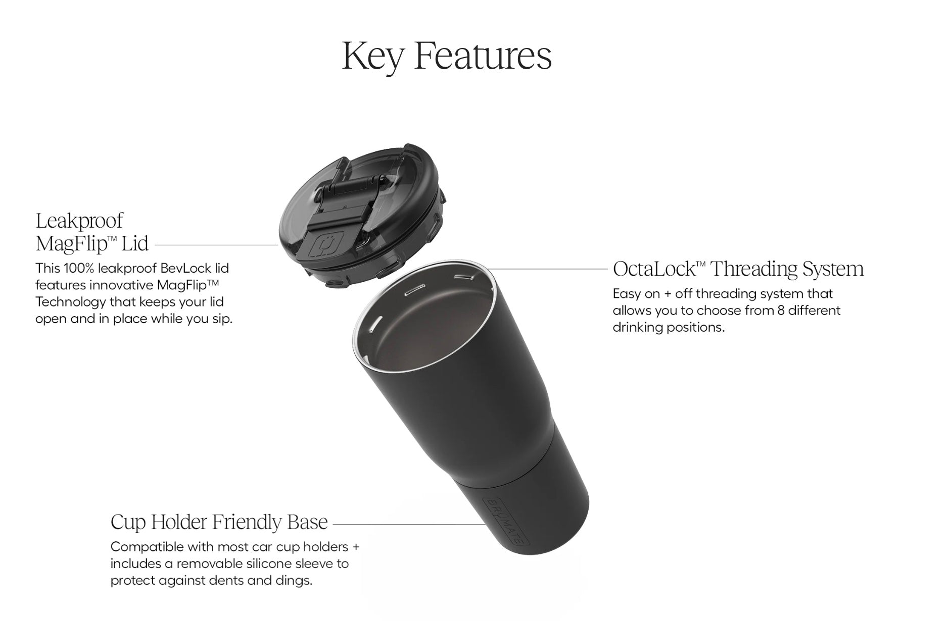 The Nav 25oz was made for navigating life’s adventures and is the most feature-packed travel tumbler there is. It has our 100% leakproof BevLock™ lid to seal in your beverages and stop leaks, our brand-new, OctaLock™ thread system to make taking your lid on and off a breeze, and our MagFlip™ technology to assist in keeping your lid open while you sip. Also equipped with a cupholder-friendly base, a removable, color-matched sleeve for ultimate durability, and our BevGuard™ technology to keep your drinks hot for 6+ hours or cold for 24+ hours.