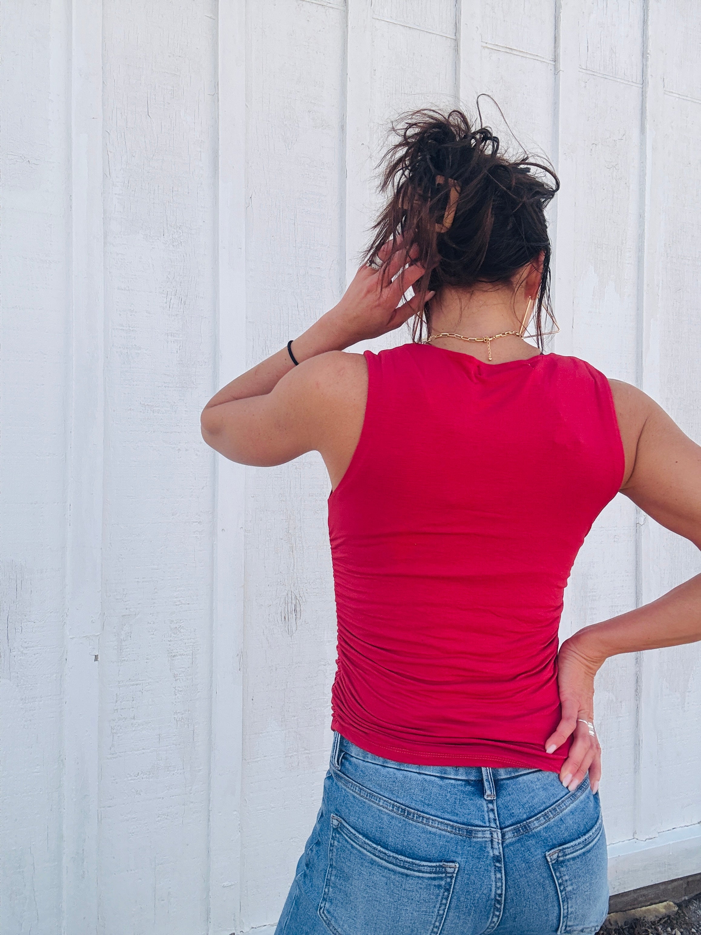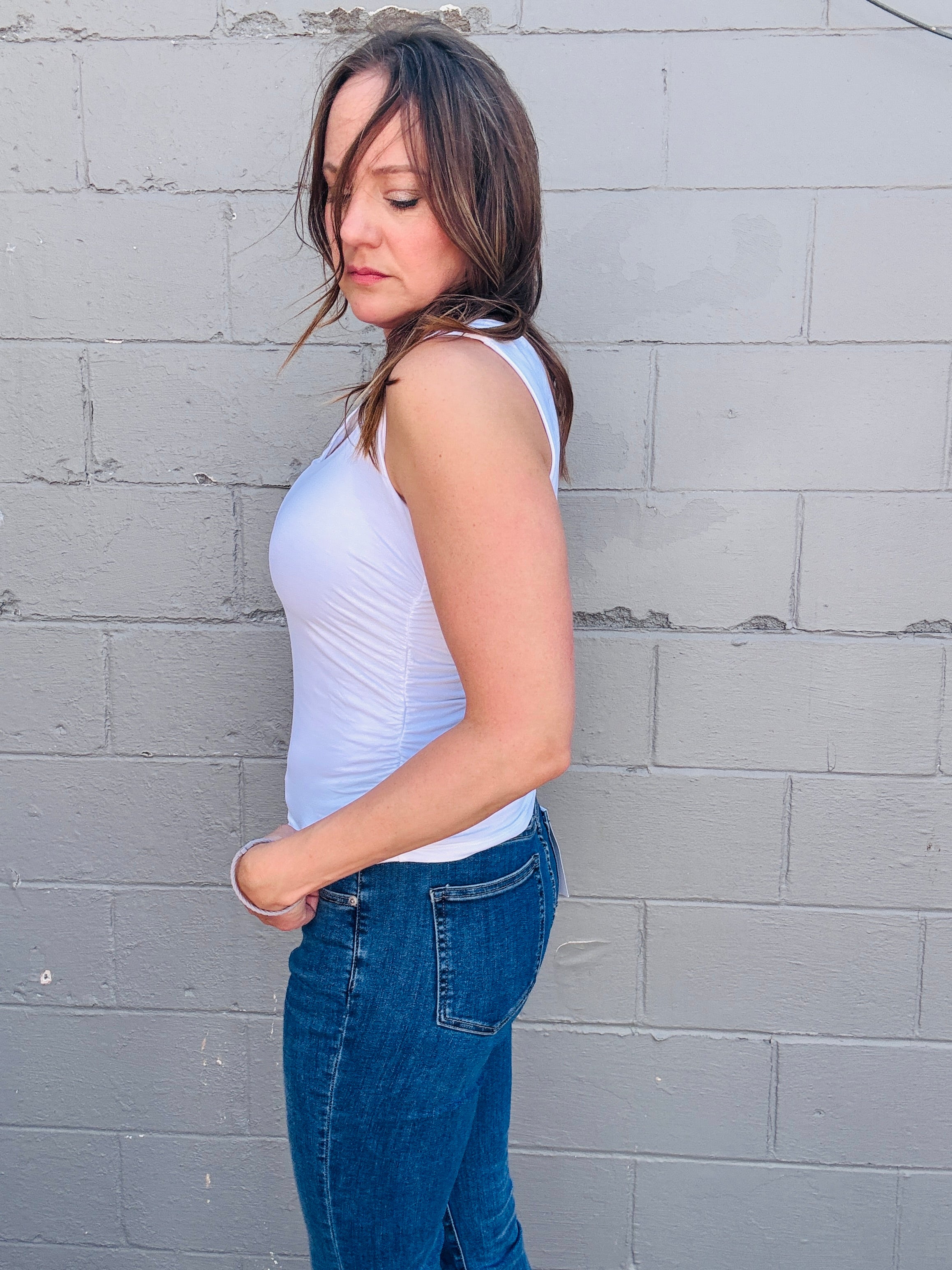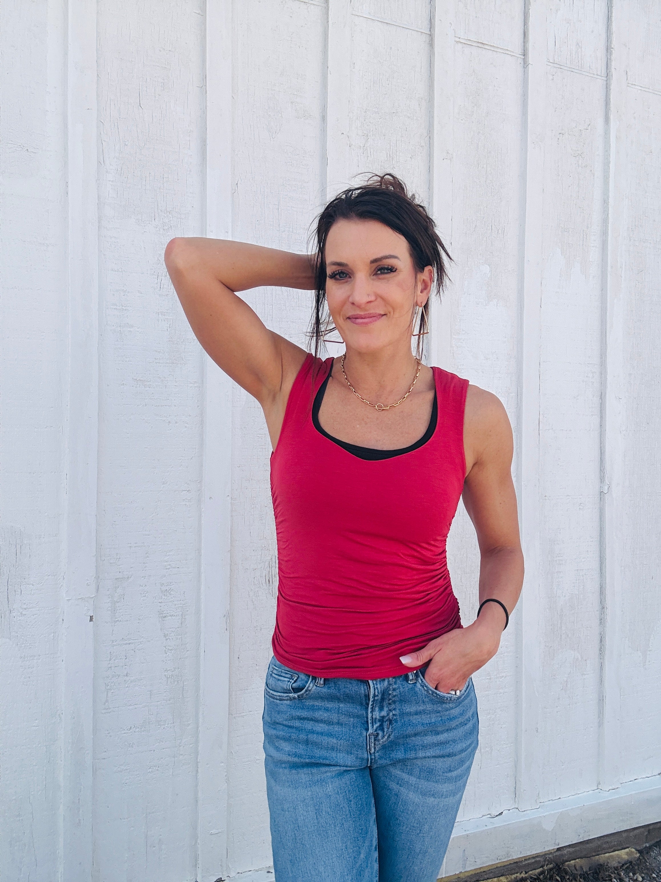 The Yulia Sweetheart Neck Seamless Tank is the perfect blend of style and comfort. Featuring a flattering sweetheart neckline and side ruching, this form-fitting tank creates a sleek, feminine silhouette. The thick straps offer extra support, while the soft, buttery jersey fabric provides a luxe feel. Whether you're dressing it up or keeping it casual, this tank is a must-have for any wardrobe.