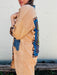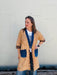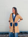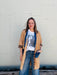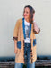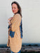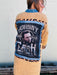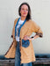 An artfully crafted long cardigan featuring an eclectic mix of vintage band tees adorning the back, paired with practical denim pockets. Each piece is uniquely designed, making it a singular statement of individual style and creative expression.