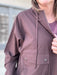 A sporty layer for going to and from workouts or just out and about, this jacket features a nylon windbreaker fabric, adjustable hoodie, and dual box side pockets with snap closures.
